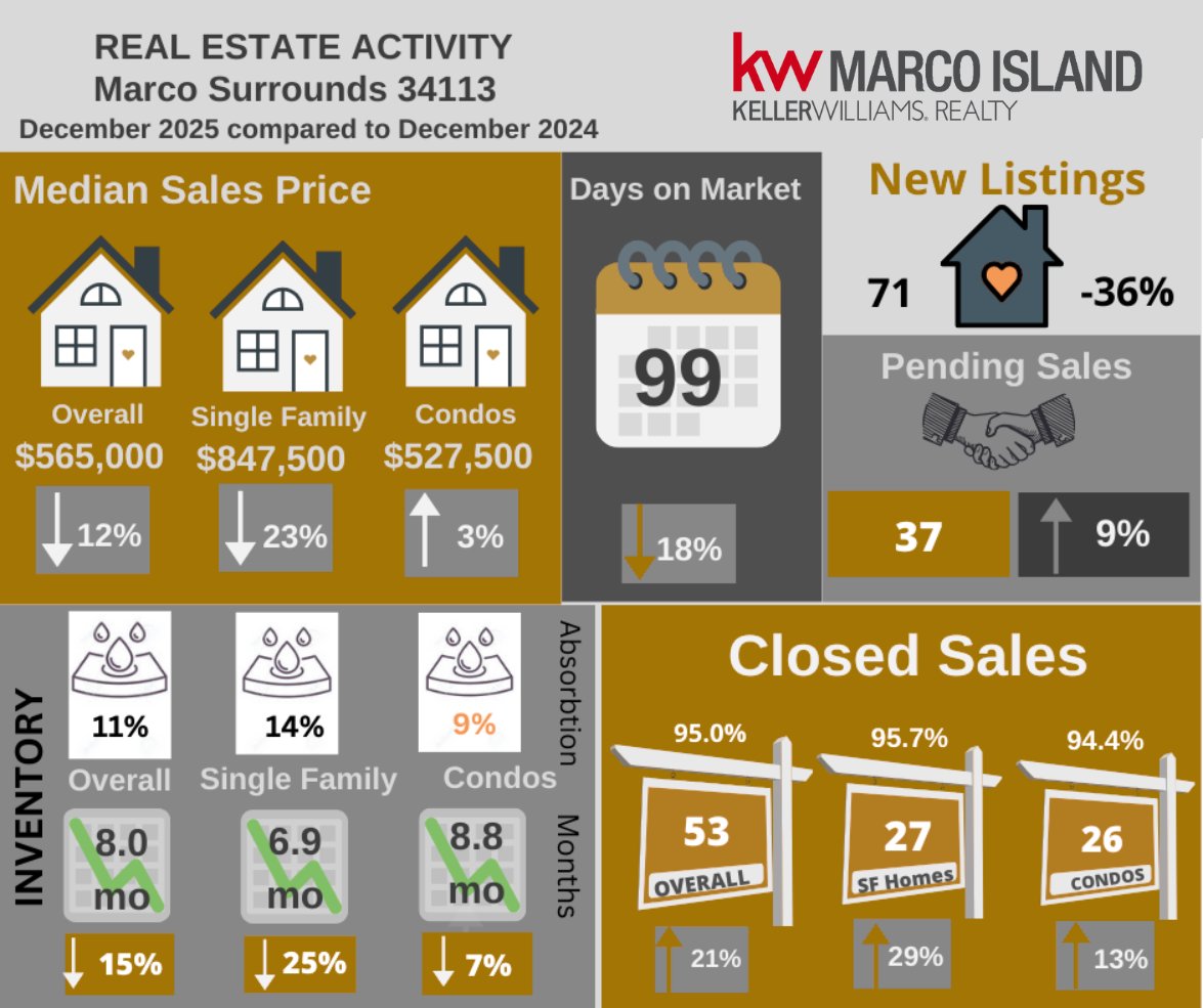 With 2025 officially closed, December’s data offers a clear picture of how the Marco Island real estate market finished the year.
